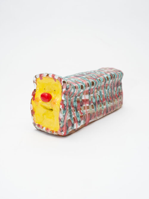 Laura Lagraña (Culitomatón, Barcelona, 1995), based in Bilbao, holds a degree in Illustration, Ceramics, and Sculpture from IAE Pau Gargallo (Badalona). Straddling sculpture and illustration, her practice transforms a gray, fast-paced world into one that is playful and absurdly colorful. Her process begins with drawing, where ideas emerge and then gain autonomy through color and its relationships; ceramics come last to give body to the characters and, through glaze and materiality, to move away from the first line and build a tender, playful, and deeply human narrative.