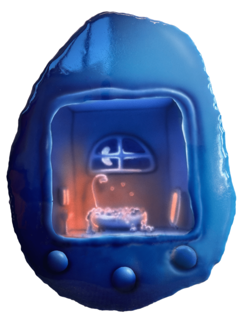 Line Finderup Jensen (b. 1991, Copenhagen) holds an MFA from the Akademie der bildenden Künste in Vienna (2019). She works with 3D software to create videos, games, installations, and interactive experiences in virtual reality. Central to her practice is painting, where she uses airbrush techniques to bring her digital work into physical form. Through sculpture she dives deeper into this topic, reflecting on the relationship between form and reality across diferent mediums. By blending digital environments with real-world spaces, she encourages us to rethink the boundaries between imagined stories and lived experiences.