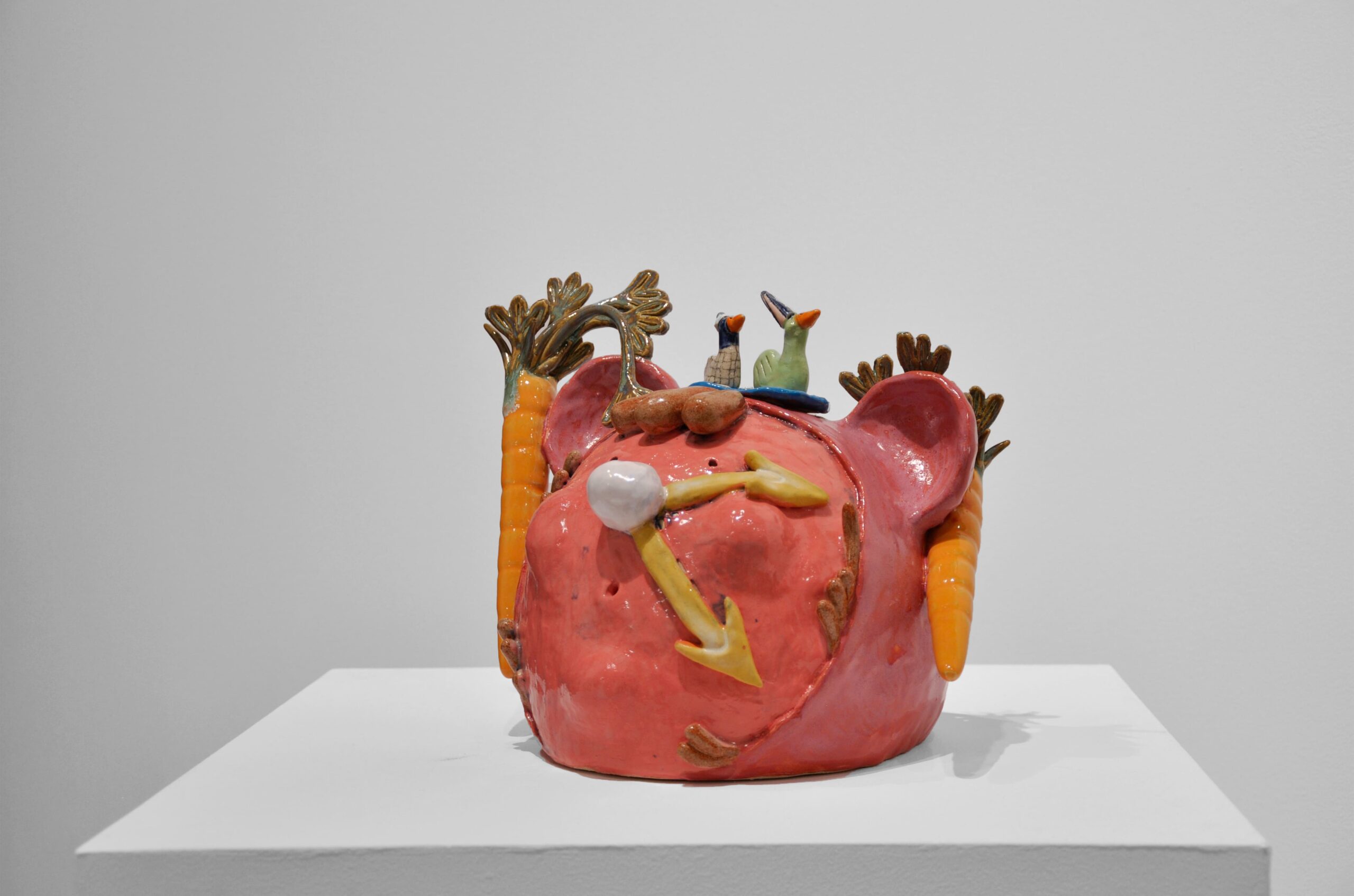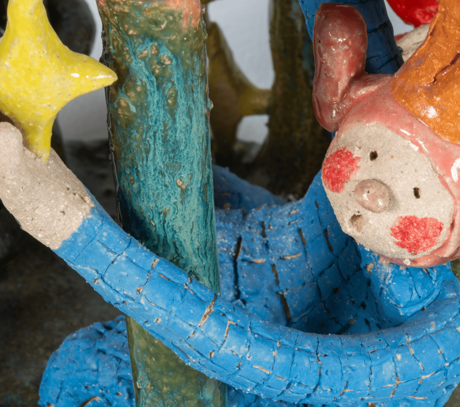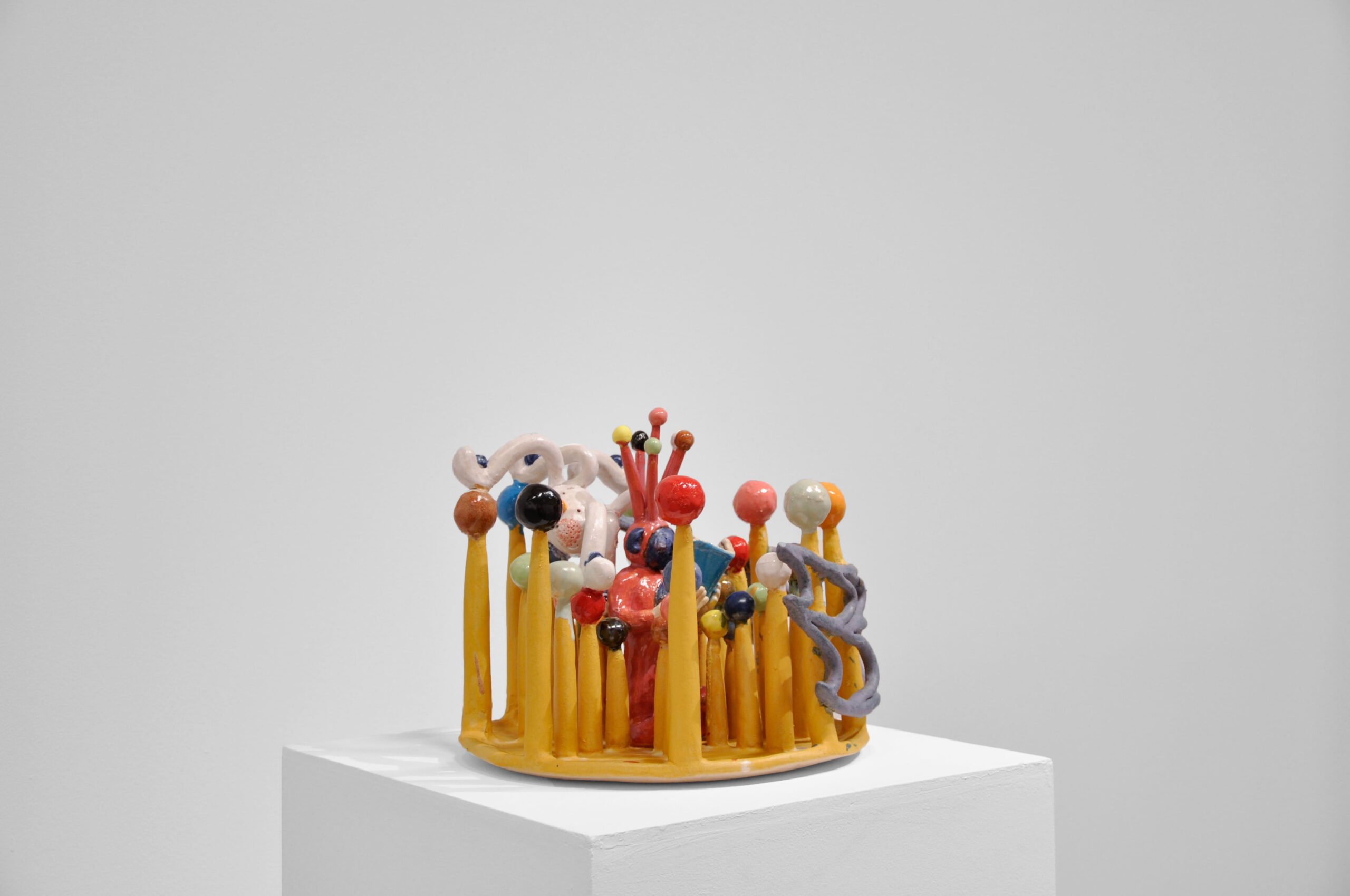 Laura Lagraña (Culitomatón, Barcelona, 1995), based in Bilbao, holds a degree in Illustration, Ceramics, and Sculpture from IAE Pau Gargallo (Badalona). Straddling sculpture and illustration, her practice transforms a gray, fast-paced world into one that is playful and absurdly colorful. Her process begins with drawing, where ideas emerge and then gain autonomy through color and its relationships; ceramics come last to give body to the characters and, through glaze and materiality, to move away from the first line and build a tender, playful, and deeply human narrative.